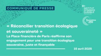Créé en octobre 2022, l’Institut de la Finance Durable, branche de Paris EUROPLACE, a pour objectif de coordonner, fédérer et accélérer l’action de la Place financière de Paris pour la réalisation de la transition écologique et la transformation de l’économie vers un modèle bas-carbone et inclusif, aligné avec les objectifs de l’Accord de Paris et les Objectifs du Développement Durable. Il rassemble l’ensemble des acteurs privés, publics et institutionnels de la Place de Paris et porte les positions de la Place au plan européen et international.